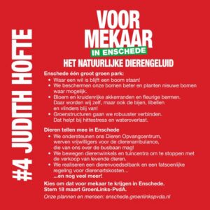 Ik ben de kandidaat GroenLinks-PvdA voor het natuurlijke dierengeluid in Enschede!